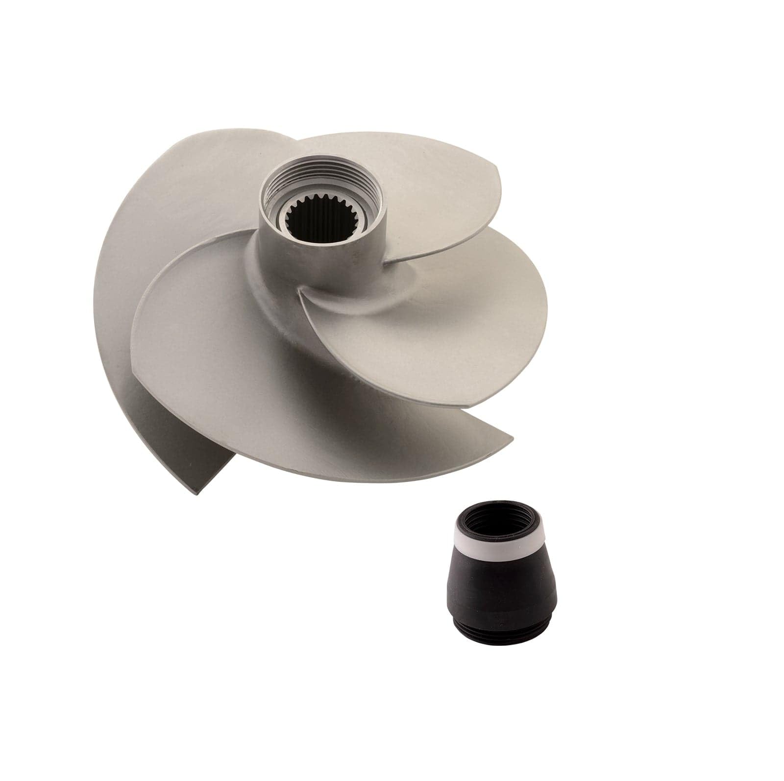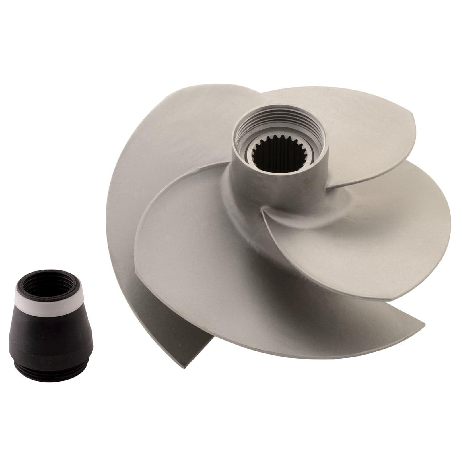 This impeller is a matte finish, stainless steel aftermarket replacement.