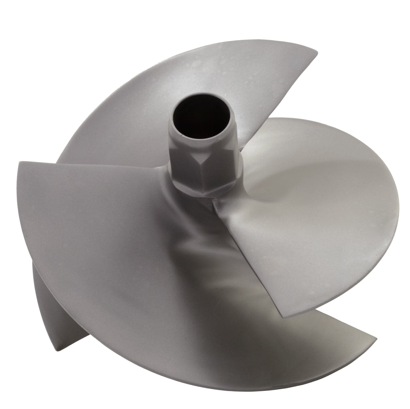 This impeller is a matte finish, stainless steel aftermarket replacement.