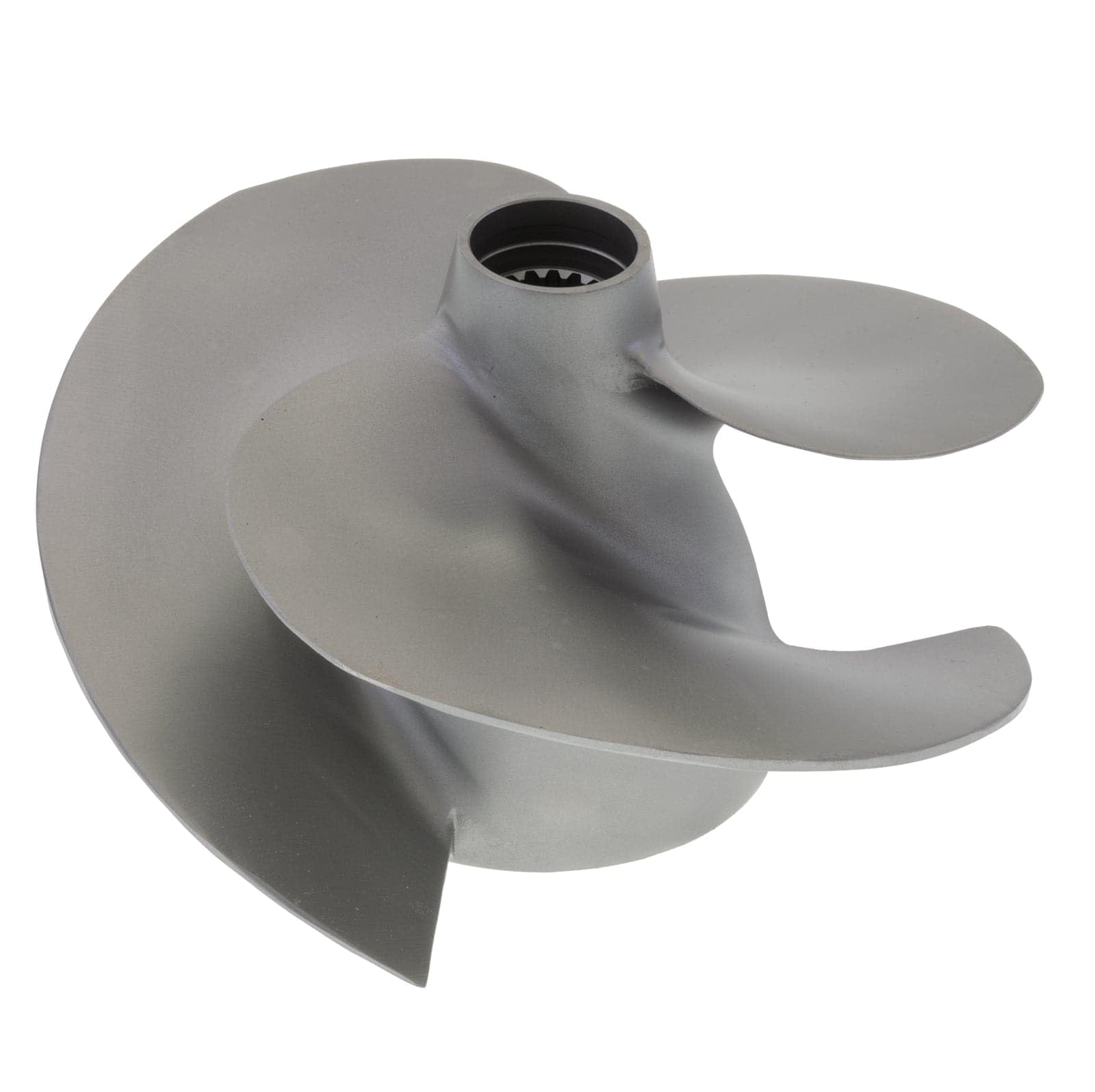 This impeller is a matte finish, stainless steel aftermarket replacement.