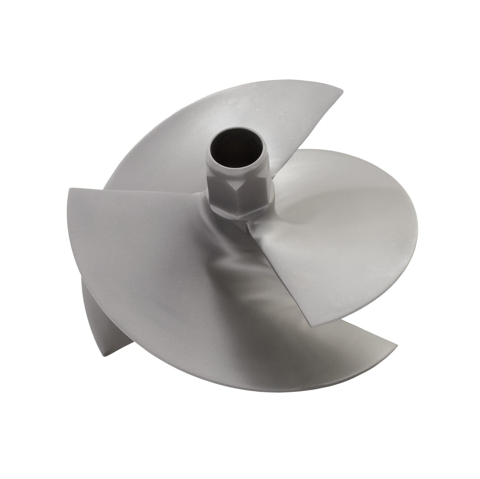 This impeller is a matte finish, stainless steel aftermarket replacement.
