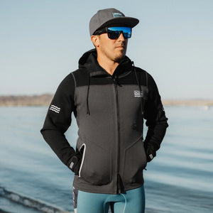 The Ride Coat delivers top-level protection with its 2mm Flex-Lite neoprene and cozy insulated neoprene hood. The smooth skin chest and shoulders shield against the wind, while Velcro wrist closures help retain body heat. Equipped with versatile pockets, D-rings, and webbing, this coat ensures you're ready for anything.