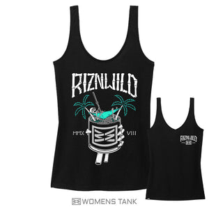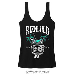 Add some tropical vibes to your wardrobe with our On the Rocks women's V-neck tank in black. Featuring a fun skeleton hammock and palm tree design, this top is sure to be your go-to for summer. Get ready to chill and have a good time!