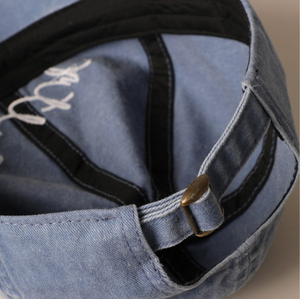 Embroidered hat with adjustable closure. Made of 100% cotton.