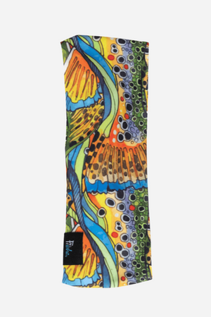 The Unbound Brown Jersey Headband brings together function and flair for your time outdoors. Inspired by the bold patterning of Brown Trout, this headband features a vibrant, rainbow-infused design that adds color to any adventure.