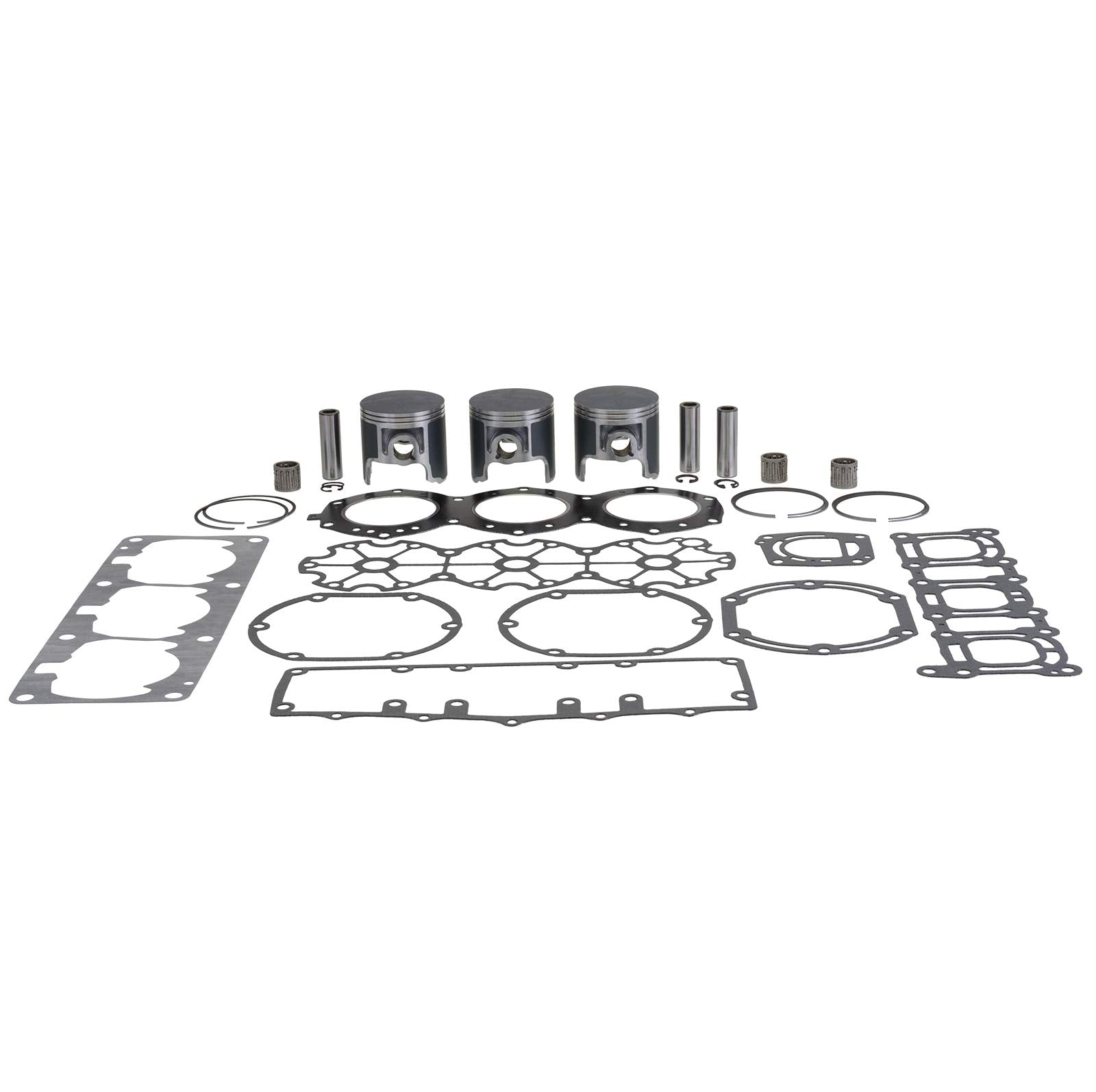 Our watercraft top end kit includes new SBT pistons, which are the first piston to be sold with a LIFETIME WARRANTY against defect. SBT pistons are cast using a high-silicone-content aluminum, and anodized on the top surface to increase the operating temperature range and retard normal wear. Sides of piston are graphite coated for minimal wear during break-in procedure; Rings, which are made of chromium-plated ductile iron and are included along with all new wrist-pins, c-clips and wrist-pin bearings; base gaskets & head/head cover gaskets/o-rings, intake gaskets and exhaust gaskets. (where applicable)